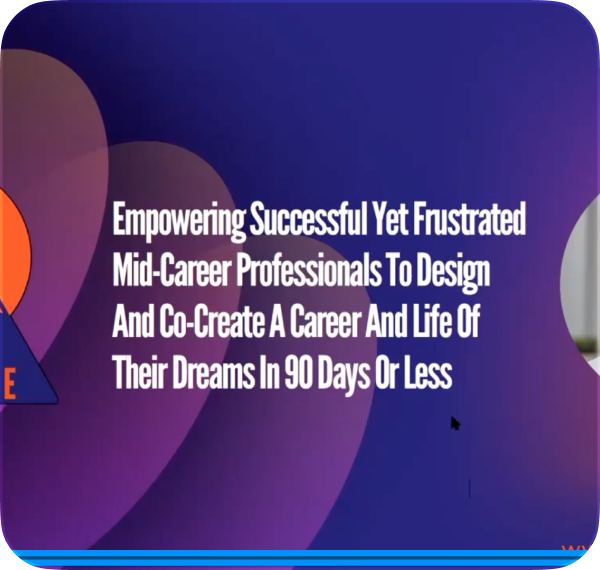 Transforming High-Achieving Yet Dissatisfied Mid-Level Professionals To Craft And Realize Their Ultimate Career And Life Aspirations In 90 Days Or Less.